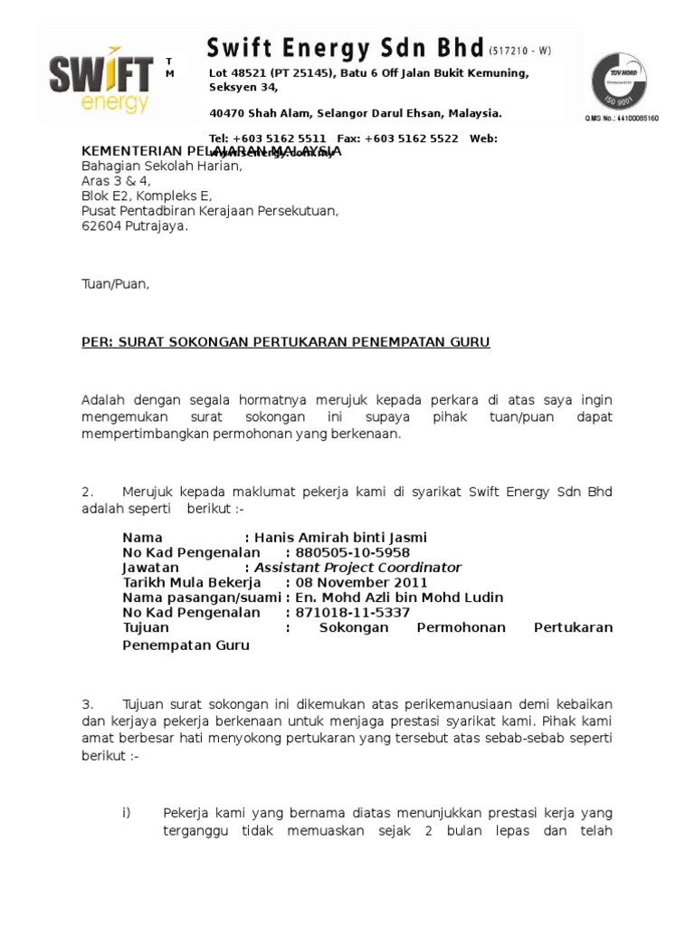 Surat Sokongan Untuk Permohonan Kerja Tengok Letter Website